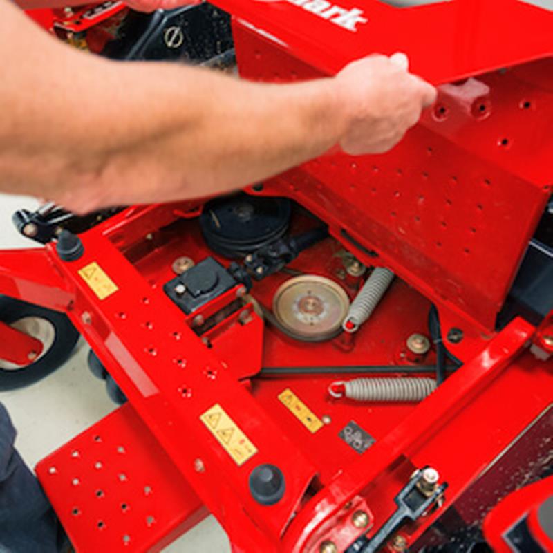Full-floating UltraCut Rear Discharge Deck. Rear-discharge standard with finish cut baffles included.