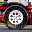 15 x 6.0-6, smooth-tread, semipneumatic tires with tapered roller bearings.